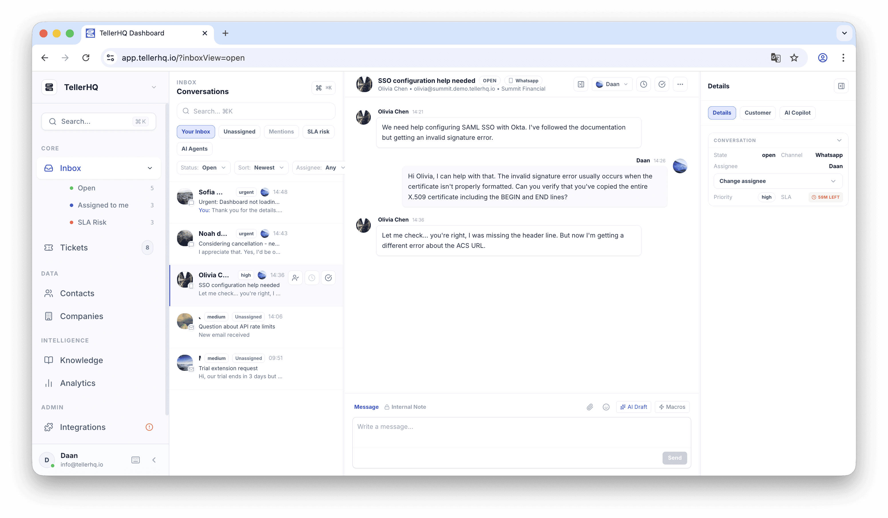 AI Copilot (draft replies, summarize thread)